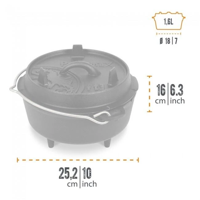 Robuste et finement fini, le Dutch Oven Petromax 3QT est parfait pour 1 à 3 personnes. Capacité de 2,3L et poids de 3,8kg. Prêt à l’utilisation (pré-assaisonné) avec ou sans pieds.