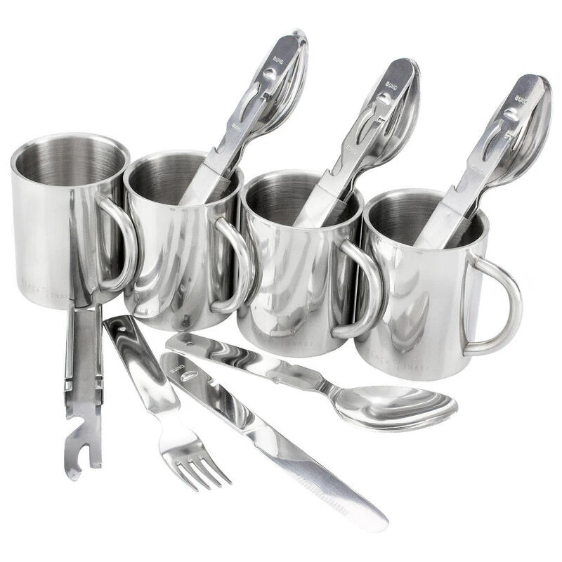 · 4 pièces de couverts par set: fourchette, couteau, cuillère, ouvre-bouteille & ouvre-boîte